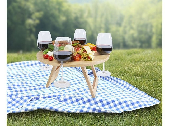 Пикник на балконе, в саду или на пляже всегда будет очень комфортным благодаря этому складному столику с 4 фиксированными отверстиями под винные бокалы. Столик очень просто раскладывается, и его легко носить с собой. Он сделан из бамбука, который добывается и производится в соответствии со стандартами устойчивого развития.