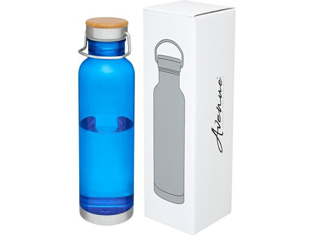 Спортивная бутылка с одинарными стенками из прочного материала от Tritan™. Устойчива к ударам, не пачкается и не пропускает запахи. Имеет съемную крышку с бамбуковым колпачком и ручку для удобной переноски. Без содержания БФА. Объем 800 мл. Представлена в подарочной коробке Avenue.