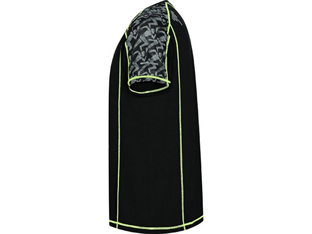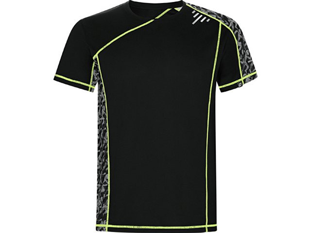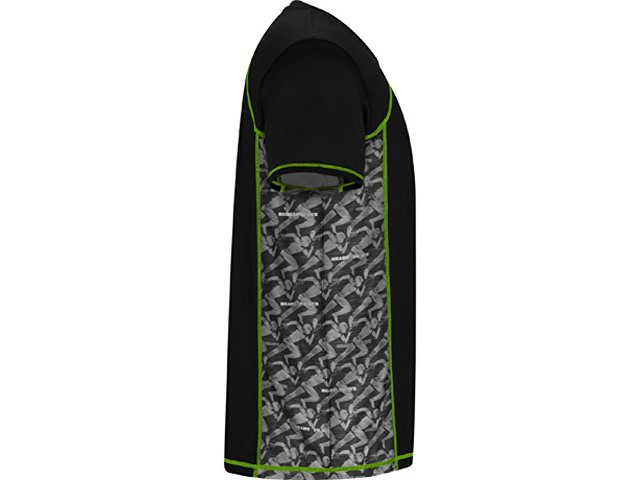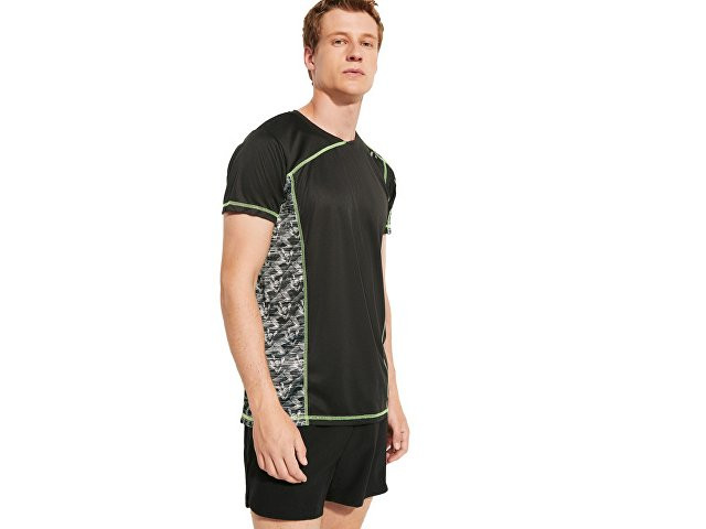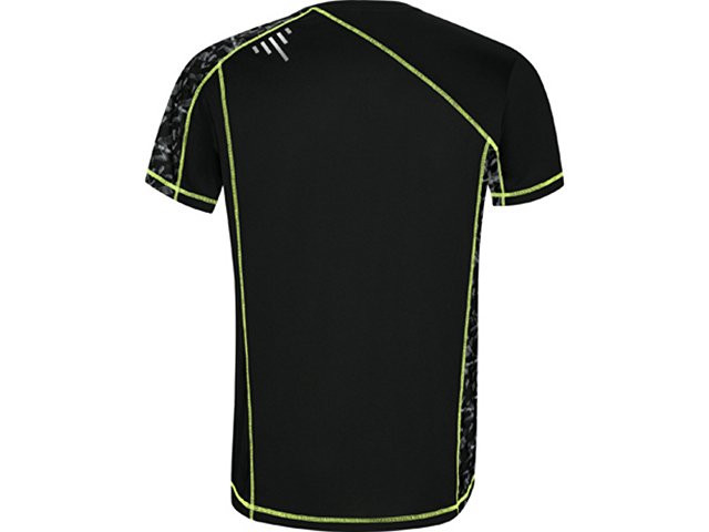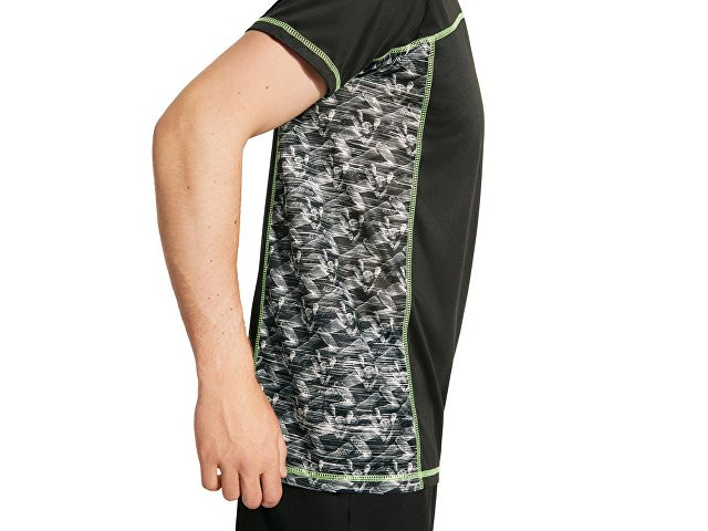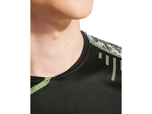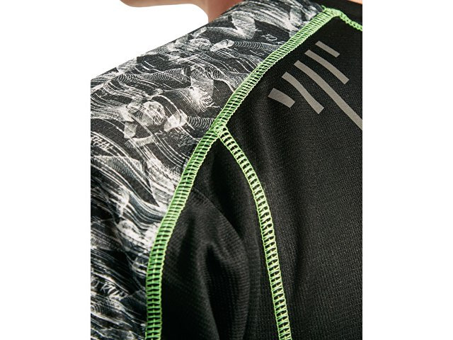 Спортивная футболка с коротким рукавом и принтованными вставками. Контрастные отстрочки плоским швом, светоотражающие элементы на полочке и спинке. Эко лейбл на рукаве. Технологичное полотно: *переработанный полиэстер с функцией контроля сухости *защита от UV излучения