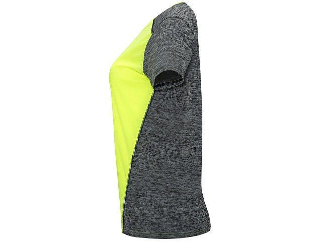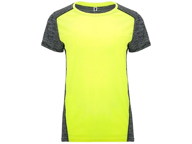 Футболка с коротким рукавом из технологического полотна. Круглый вырез горловины. Комбинация двух полиэстеровых полотен. Основное полотно на полочке со структурой, дополнительное полотно на спинке, рукавах и плечах с меланжевым эффектом. Задняя часть немного длиннее. Легко сохнущее дышащее полотно. В ассортименте так же присутствует аналогичная мужская и детская модели "Zolder"