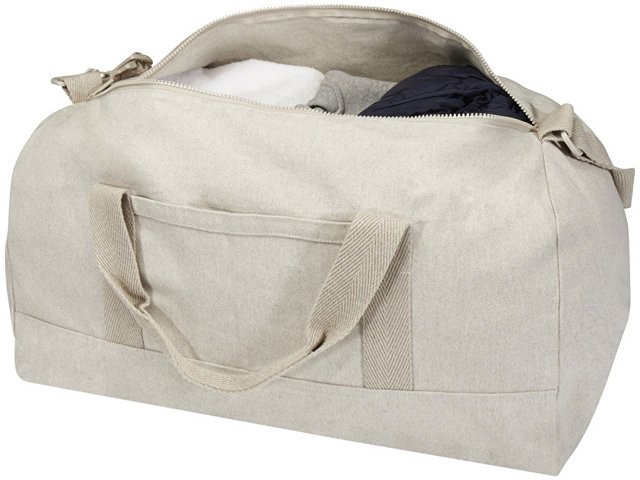 Спортивная сумка Porter, изготовленная из переработанного хлопка и переработанного полиэстера плотностью 500 г/м², имеет просторное основное отделение для оптимального хранения крупных предметов и небольшой передний накладный карман для хранения мелких предметов, таких как паспорт или телефон. Сумку можно носить за две короткие ручки или за съемный и расширяемый плечевой ремень, длину которого можно отрегулировать для максимального удобства. Спортивная сумка изготовлена из переработанных волокон Cyclo®, в которых используются предварительно отсортированные отходы, определяющие цвет пряжи. Эти волокна не только снижают потребность в первичных ресурсах, но и демонстрируют приверженность циклическому образу жизни, воплощая суть сокращения отходов и продвижения системы с замкнутым контуром. Каждая сумка также поставляется с индикатором Aware™. Эта инновационная функция позволяет пользователям отслеживать происхождение и путь своего товара с помощью QR-кода, повышая прозрачность цепочки поставок и способствуя более прочной связи между продуктом и процессом его производства. Объем: 50 литр. 70% Переработанный Хлопок, 30% Переработанный Полиэстер, 500 г/м2.