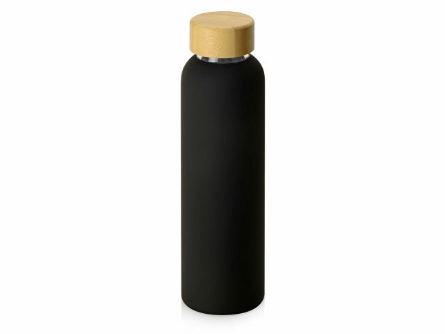Стеклянная бутылка с бамбуковой крышкой «Foggy», 600мл, черный (Р)