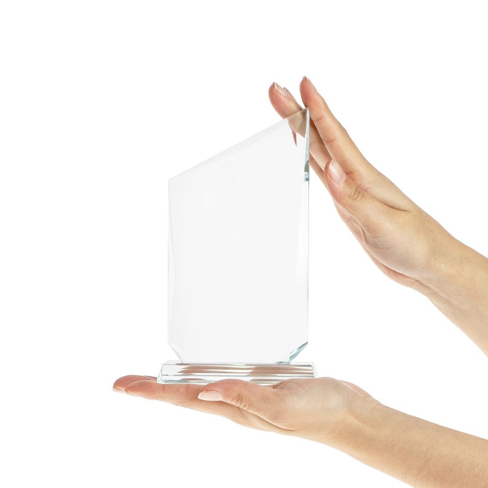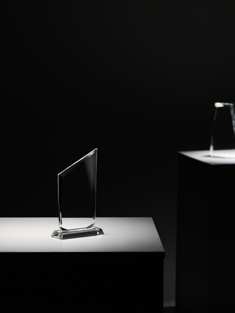 Благодаря современному исполнению стела Staklar прекрасно впишется в интерьер как делового кабинета, так и масштабного выставочного зала. Стела изготовлена из стекла К9, в основе которого лежит оптическое боросиликатное стекло. Эту марку стекла отличает низкий процент посторонних включений, высокий показатель преломления и высокая прозрачность — идеальные качества для изготовления наград премиального уровня.Staklar. Чистый успех.