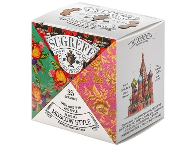 Чай «ПО-МОСКОВСКИ» сделан на основе купажа чёрного байхового чая с добавлением самых разных фруктов и ягод. Именно такой вкусный «чайный компот», когда в большую кастрюлю с чаем в изобилии добавляются фрукты и ягоды, принято варить в цыганских общинах. Умный интеллигентный подарок для друзей, коллег, партнёров; оригинальный сувенир из России для иностранцев; небанальный подарок руководителю; презент для учителей, врачей и т.д.; вкусный чай для личного потребления.