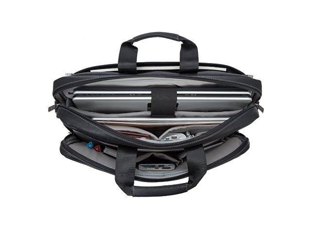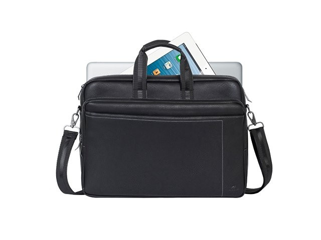 Сумка для ноутбука до 16''. • Многофункциональная сумка для ноутбуков до 16". • Сумка выполнена из плотной искусственной кожи для защиты ноутбука от случайных ударов и царапин, а также от пыли и влаги. • Основное отделение для ноутбука, имеет мягкие стенки и ремень для надежной фиксации ноутбука до 16". • Два дополнительных внутренних отделения помогут удобно разместить все необходимые аксессуары, планшет до 10.1" и документы. • Два внешних передних кармана на молнии. Один для хранения аксессуаров, зарядного устройства. Второй оборудован панелью-органайзером для хранения визитных карт, авторучек, смартфона. • Дополнительное отделение на задней панели для хранения аксессуаров, документов. • На задней панели имеется карман на молнии для крепления сумки к ручке чемодана. • Ручки из оригинальной, цельной стропы закреплены через всю внутреннюю поверхность, что значительно усиливает конструкцию сумки. • Металлическая, оригинальная фурнитура. • Регулируемый, съемный плечевой ремень с мягкой накладкой.