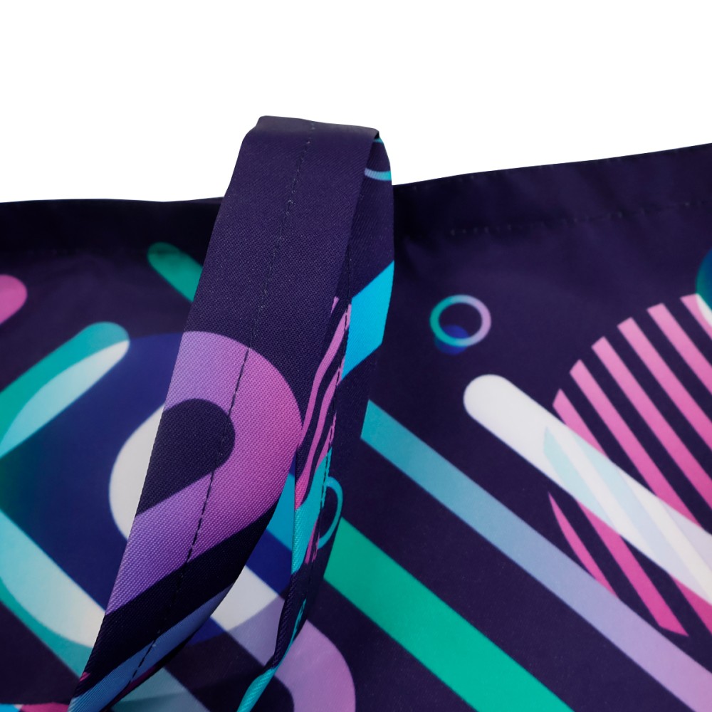 Сумка для покупок Бэгис с полноцветной печатью. ✨ Стандартный шоппер с короткими ручками. Полноцветная печать по всей поверхности от шва до шва в соответствии с брендбуком клиента (любой оттенок по CMYK: логотипы, надписи и самые разнообразные принты). Без подкладки внутри. Размер: 45 х 40см. Размер ручек: 50 х 3см (пошиты из того же материала, из которого изготавливается сама сумка). Материал: ткань Промо. Плотность: 245г/м². ✨ Ткань Промо - это 100% полиэфирное полотно саржевого переплетения с антистатической пропиткой. Ткань плотная, очень крепкая, хорошо держит форму.