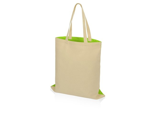 Сумка для шопинга Twin двухцветная из хлопка, 180 г/м2, зеленое яблоко/натуральный