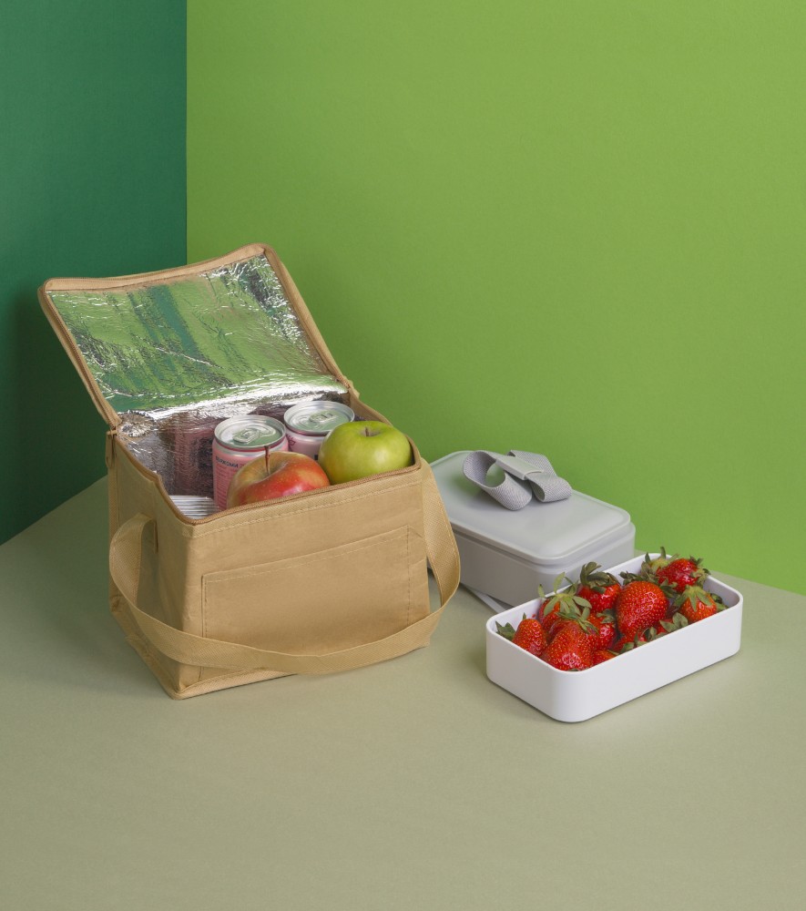 Сумка-холодильник "Craft small" изготовлена из влагоустойчивой ламинированной бумаги. Внутри - изотермический наполнитель на основе алюминия, который сохранит продукты и напитки прохладной температуры.