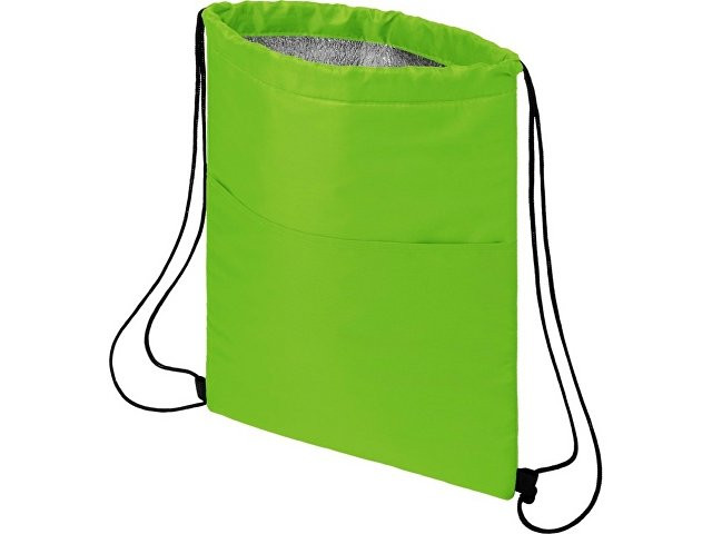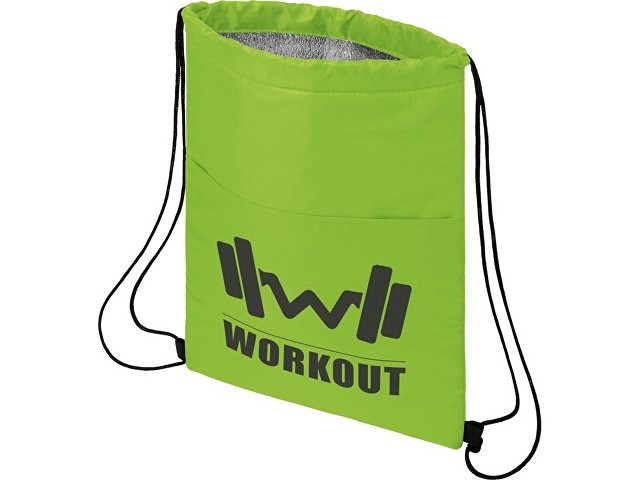 Сумка-холодильник затягивается на шнурок черного цвета. С открытым передним карманом. Вмещает 12 банок. Прочность до 5 кг.
