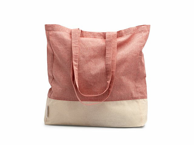 Сумка из переработанного хлопка с отделкой из натурального хлопка плотностью 120 г/м² с донной вставкой. Усиленные ручки длиной 70 см.