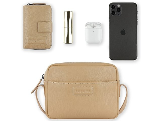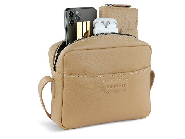 Сумка кросс-боди женская BUGATTI ЭЛЬЗА | ELSA, песочного цвета, воловья кожа/полиэстер, 19х5,5х14 см