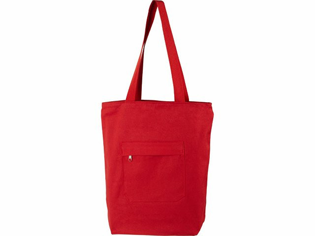 Сумка на молнии Zipper из хлопка 280 г c карманом на молнии спереди, красный