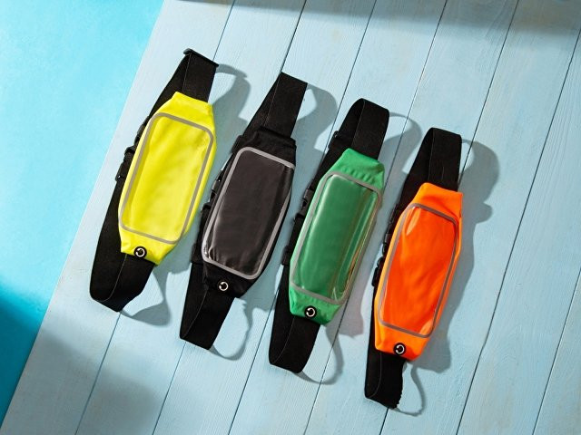 Сумка на пояс с отделением для смартфона размером до 16 х 8 см и выходом для наушников.