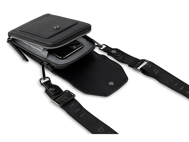 Сумка наплечная BUGATTI АЛМАТА | ALMATA, чёрная, полиуретан, 11х4х19 см