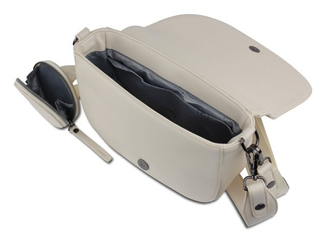 Сумка наплечная женская BUGATTI АЛМАТА | ALMATA, с кошельком, бежевая, полиуретан, 27х6х18,5 см