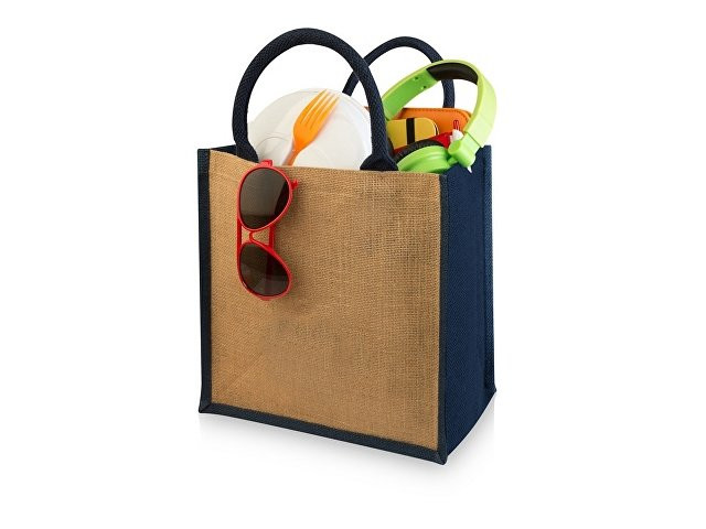 Джутовая подарочная сумка с ламинированным открытым основным отделением, которое застегивается на липучку. Хлопковые ручки высотой 11,5 см.
