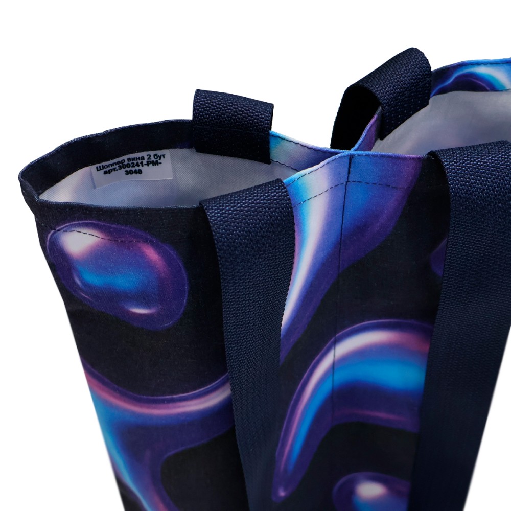 Сумка-шоппер для двух бутылок вина - Вогги с полноцветной печатью. ✨ Шоппер с дополнительно отстроченным дном 8см (увеличение объема) и вертикальной прострочкой для разделения на 2 секции. Стильная и практичная сумка для 2х бутылок — отличный вариант для подарка или удобной транспортировки алкогольной продукции. В него легко помещаются две бутылки, а прочные ручки обеспечивают комфорт при переноске. Яркий дизайн с оригинальным принтом добавит настроения и сделает упаковку подарка особенно запоминающейся. Размер: 30 х 40см. Размер ручек: 70 х 3см (пошиты из ременной ленты стандартной цветовой палитры). Материал: Твил. Плотность: 240г/м². ✨ Твил образован диагональным переплетением. В основе скрученные натуральные или смесовые волокна. Внешне рельефная поверхность в виде крупного или мелкого диагонального рубчика. Не тускнеют со временем. Благодаря своей структуре твил чаще всего отлично драпируется. ✨Обработка WR - специально покрытие, которое наносится только на внешнюю сторону ткани, в результате чего капли воды не задерживаются, а скатываются. Данный вид пропитки не ухудшает циркуляцию воздуха, что позволяет избежать "парникового" эффекта. Подходит для сублимационной печати.
