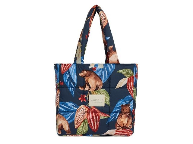 Стеганая сумка-шоппер с принтом ‘Мишки в шоколаде’ от российского бренда Varvara. Вместительный аксессуар, оптимально подходит под формат A4. Внутри имеется карман для мелочей. Принт «Мишки в шоколаде» продолжает серию сказочных принтов Varvara. Задорные медвежата прячутся в листьях и плодах вечнозеленого какао, создавая яркий, эмоциональный узор. Сумка упакована в подарочную коробку. Бережный уход: - Ручная стирка при температуре не выше 30 градусов. - Сушка в горизонтальном положении. * фрагмент принта может отличаться от представленного на фото