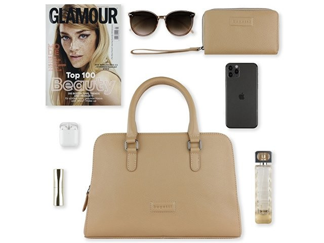 Сумка женская BUGATTI ЭЛЬЗА | ELSA, песочного цвета, воловья кожа/полиэстер, 32х13х22 см