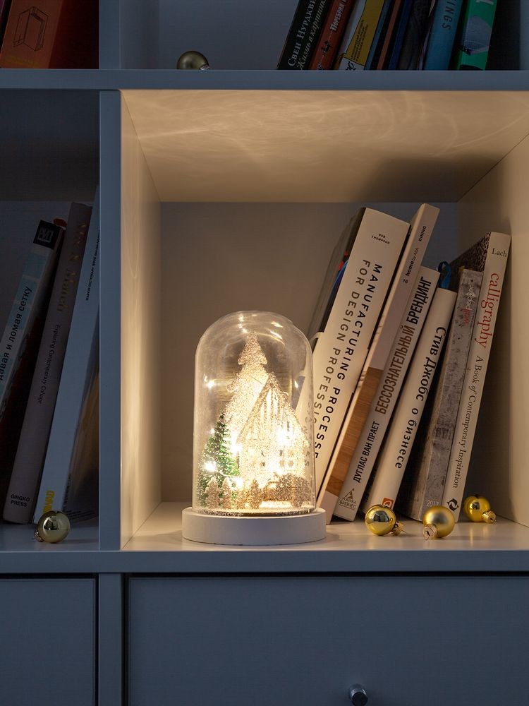 Внутри миниатюрная гирлянда с 10 лампочками с теплым белым светом. Работает от 2 батареек типа AAA (в комплект не входят).