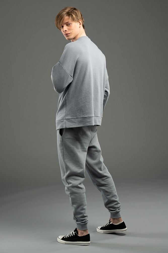 Свитшот унисекс свободной посадки со спущенным плечом.