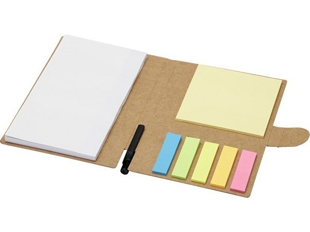 Буклет с липкими листками для заметок Swift и шариковой ручкой — очень удобный и необходимый в офисе предмет. В комплект входит 25 листов белой чистой бумаги плотностью 70 г/м2(14,1 x 7,8 см). В комплект также входят маленькие (4,5 x 1,2 см) и большие (7,5 x 7,5 см) цветные стикеры. Корпус шариковой ручки изготовлен из переработанной бумаги. Цвет чернил: черный. Длина непрерывной линии: 500 метров. Размер пера: 1,00 мм.