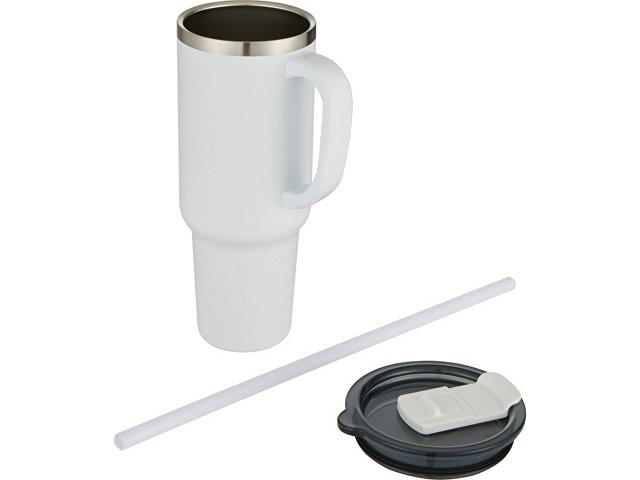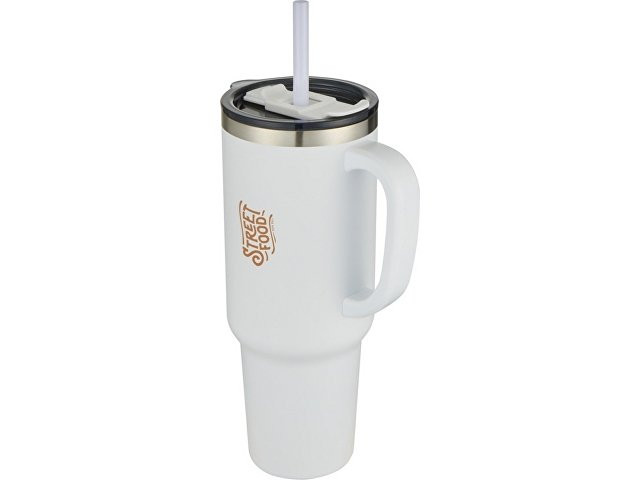 Sydney медная кружка с двойными стенками, сертифицированная согласно RCS, с вакуумной изоляцией и соломинкой, 1200 мл - Белый