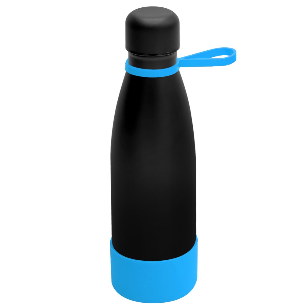 Наша термобутылка из нержавеющей стали с двойными стенками идеально подходит для горячих или холодных напитков и впечатляет своим модным и функциональным дизайном. Конструкция с двойными стенками и вакуумом гарантирует, что напитки дольше останутся горячими или холодными. Бутылку для питья можно заказать в элегантном черном или белом матовом порошковом исполнении. Доступна объёмом 480 мл. Стильно разместите свой логотип на этой модной бутылке для напитков премиум-качества. Двойная стенка с медно-вакуумной изоляцией Микропорошковое покрытие 100% герметичность Цвет по PANTONE® кольца-держателя и манжеты (максимально приближен): Sky Blue 298C