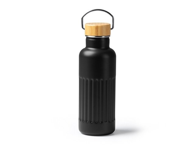 Термобутылка «Нобук» из переработанной нержавеющей стали, с бамбуковой крышкой, черный
