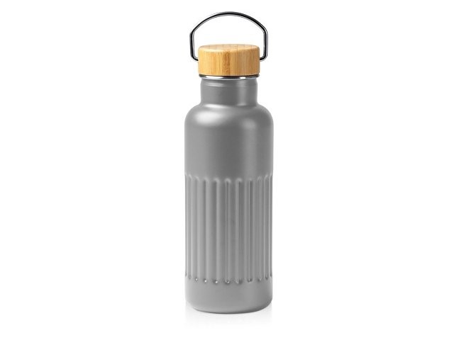 Термобутылка «Нобук» из переработанной нержавеющей стали, с бамбуковой крышкой, серый