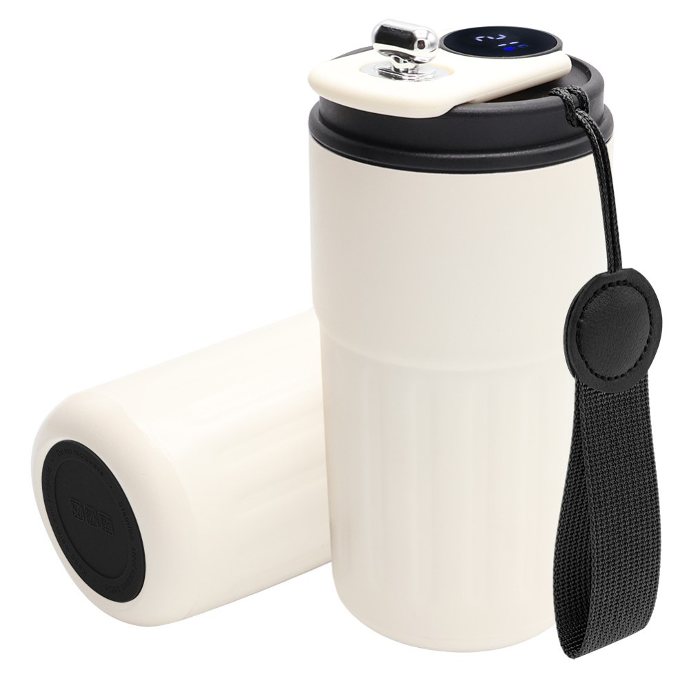 Термокружка Ashly с дисплеем выполнена из пищевой нержавеющей стали. Объем 400 мл. Имеет двойные стенки с вакуумной изоляцией, крышка изготовлена из пищевого безопасного для человека пластика. Особенностью термокружки Ashly является наличие сенсорного индикатора температуры, расположенного в крышке. Чтобы узнать температуру напитка внутри кружки, достаточно прикоснуться к поверхности крышки. Помимо этого, термокружка Ashly очень удобна в использовании. Просто нажмите на клапан в направлении дисплея, чтобы открыть верхнюю часть крышки и насладиться любимым напитком. Элегантный дизайн, удобство и функциональность - вот что делает термокружку Ashly незаменимым аксессуаром для всех любителей горячих и холодных напитков. В комплекте: шнурок, силиконовая накладка и фирменная коробка. Надежная крышка - качественные и безопасные материалы - двойные стенки из нержавеющей стали - сенсорный ЖК-дисплей - информация о температуре жидкости -отличные теплоизоляционные свойства - эргономичный дизайн - удобная форма! Термокружка подходит для большинства автомобильных подстаканников.