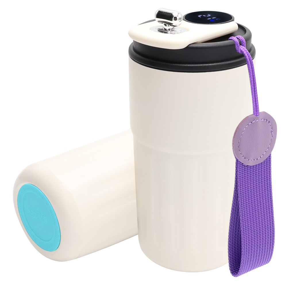 Термокружка Ashly с дисплеем выполнена из пищевой нержавеющей стали. Объем 400 мл. Имеет двойные стенки с вакуумной изоляцией, крышка изготовлена из пищевого безопасного для человека пластика. Особенностью термокружки Ashly является наличие сенсорного индикатора температуры, расположенного в крышке. Чтобы узнать температуру напитка внутри кружки, достаточно прикоснуться к поверхности крышки. Помимо этого, термокружка Ashly очень удобна в использовании. Просто нажмите на клапан в направлении дисплея, чтобы открыть верхнюю часть крышки и насладиться любимым напитком. Элегантный дизайн, удобство и функциональность - вот что делает термокружку Ashly незаменимым аксессуаром для всех любителей горячих и холодных напитков. В комплекте: шнурок, силиконовая накладка и фирменная коробка. Надежная крышка - качественные и безопасные материалы - двойные стенки из нержавеющей стали - сенсорный ЖК-дисплей - информация о температуре жидкости -отличные теплоизоляционные свойства - эргономичный дизайн - удобная форма! Термокружка подходит для большинства автомобильных подстаканников. Цвет шнурка, максимально близкий к пантону 2077С, цвет накладки максимально близкий к пантону 2226С.