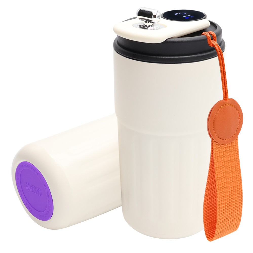 Термокружка Ashly с дисплеем выполнена из пищевой нержавеющей стали. Объем 400 мл. Имеет двойные стенки с вакуумной изоляцией, крышка изготовлена из пищевого безопасного для человека пластика. Особенностью термокружки Ashly является наличие сенсорного индикатора температуры, расположенного в крышке. Чтобы узнать температуру напитка внутри кружки, достаточно прикоснуться к поверхности крышки. Помимо этого, термокружка Ashly очень удобна в использовании. Просто нажмите на клапан в направлении дисплея, чтобы открыть верхнюю часть крышки и насладиться любимым напитком. Элегантный дизайн, удобство и функциональность - вот что делает термокружку Ashly незаменимым аксессуаром для всех любителей горячих и холодных напитков. В комплекте: шнурок, силиконовая накладка и фирменная коробка. Надежная крышка - качественные и безопасные материалы - двойные стенки из нержавеющей стали - сенсорный ЖК-дисплей - информация о температуре жидкости -отличные теплоизоляционные свойства - эргономичный дизайн - удобная форма! Термокружка подходит для большинства автомобильных подстаканников.
