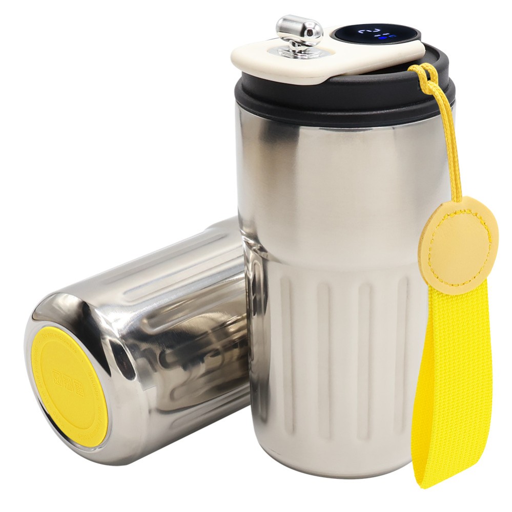 Термокружка Ashly с дисплеем выполнена из пищевой нержавеющей стали. Объем 400 мл. Имеет двойные стенки с вакуумной изоляцией, крышка изготовлена из пищевого безопасного для человека пластика. Особенностью термокружки Ashly является наличие сенсорного индикатора температуры, расположенного в крышке. Чтобы узнать температуру напитка внутри кружки, достаточно прикоснуться к поверхности крышки. Помимо этого, термокружка Ashly очень удобна в использовании. Просто нажмите на клапан в направлении дисплея, чтобы открыть верхнюю часть крышки и насладиться любимым напитком. Элегантный дизайн, удобство и функциональность - вот что делает термокружку Ashly незаменимым аксессуаром для всех любителей горячих и холодных напитков. В комплекте: термокружка, шнурок, силиконовая накладка и фирменная коробка. Надежная крышка - качественные и безопасные материалы - двойные стенки из нержавеющей стали - сенсорный ЖК-дисплей - информация о температуре жидкости -отличные теплоизоляционные свойства - эргономичный дизайн - удобная форма! Термокружка подходит для большинства автомобильных подстаканников. Жёлтый цвет, максимально близкий к пантону 108С
