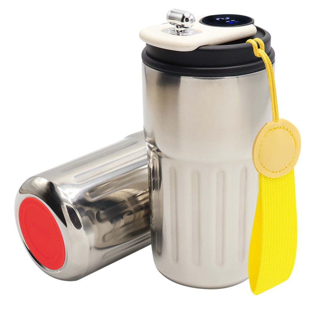 Термокружка Ashly с дисплеем выполнена из пищевой нержавеющей стали. Объем 400 мл. Имеет двойные стенки с вакуумной изоляцией, крышка изготовлена из пищевого безопасного для человека пластика. Особенностью термокружки Ashly является наличие сенсорного индикатора температуры, расположенного в крышке. Чтобы узнать температуру напитка внутри кружки, достаточно прикоснуться к поверхности крышки. Помимо этого, термокружка Ashly очень удобна в использовании. Просто нажмите на клапан в направлении дисплея, чтобы открыть верхнюю часть крышки и насладиться любимым напитком. Элегантный дизайн, удобство и функциональность - вот что делает термокружку Ashly незаменимым аксессуаром для всех любителей горячих и холодных напитков. В комплекте: термокружка, шнурок, силиконовая накладка и фирменная коробка. Надежная крышка - качественные и безопасные материалы - двойные стенки из нержавеющей стали - сенсорный ЖК-дисплей - информация о температуре жидкости -отличные теплоизоляционные свойства - эргономичный дизайн - удобная форма! Термокружка подходит для большинства автомобильных подстаканников. Цвет шнурка, максимально близкий к пантону 2077С. Жёлтый цвет, максимально близкий к пантону 108C, красный цвет максимально близкий к пантону 186C