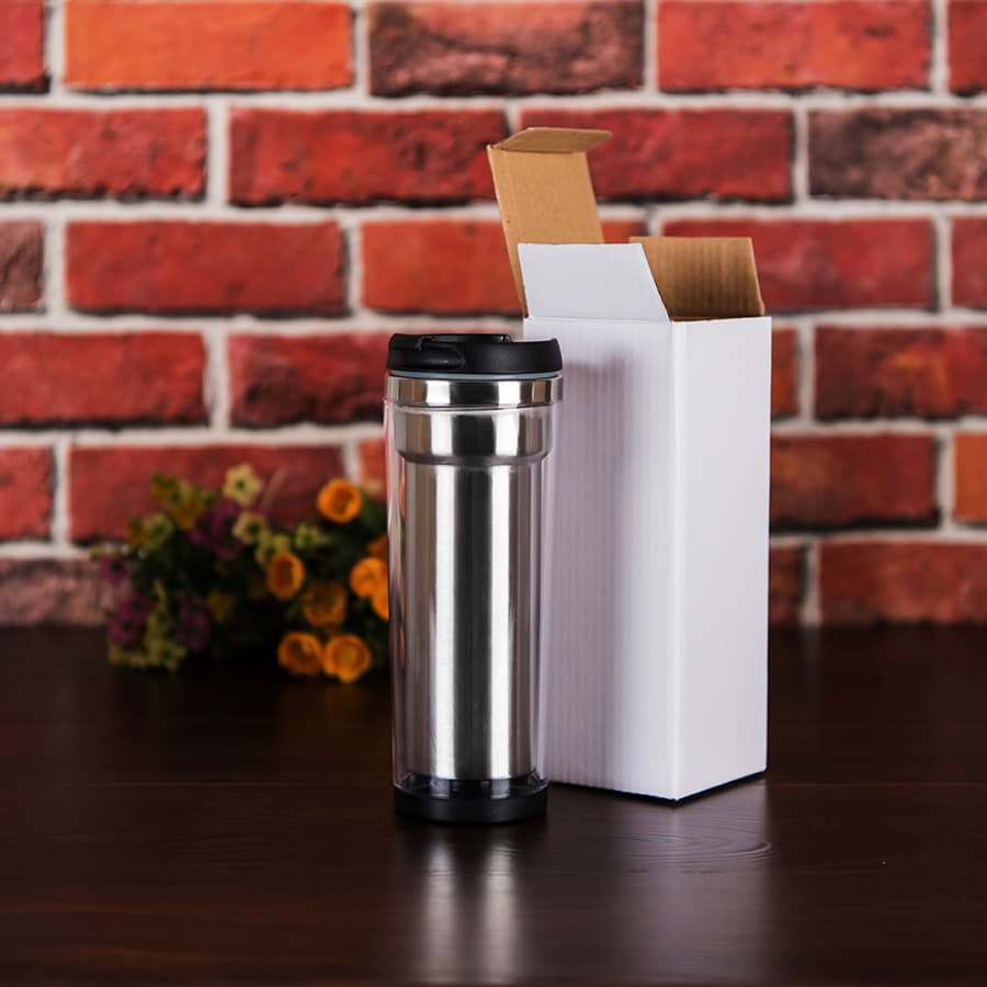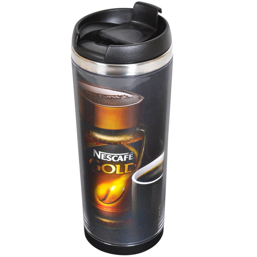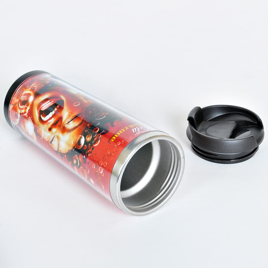 Термокружка IDEA под полиграфическую вставку, 420 мл, нержавеющая сталь/пластик, прозрачный