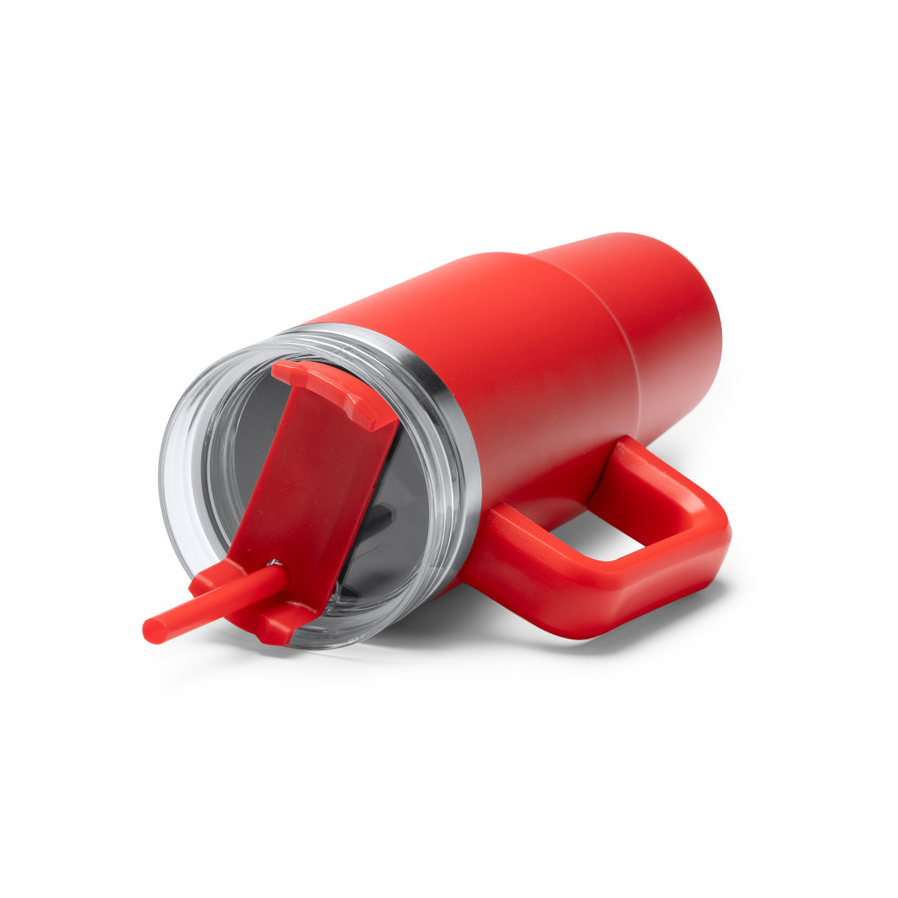 Термокружка из переработанной нержавеющей стали. Крышка с трубочкой и винтовой системой закрытия. Вместимость: 870 мл.