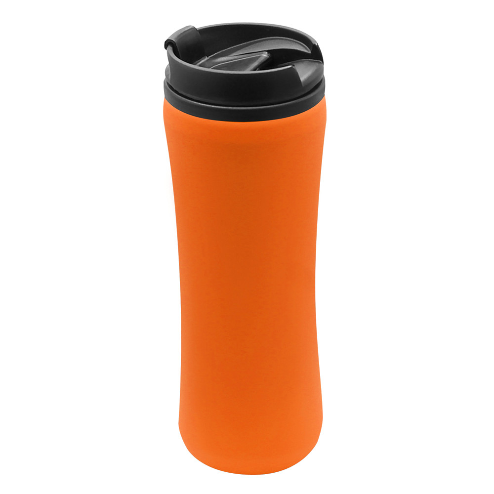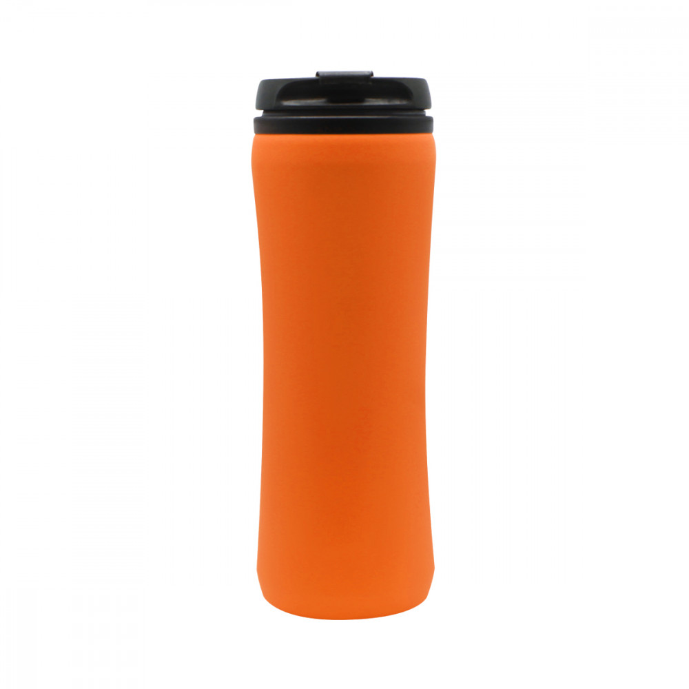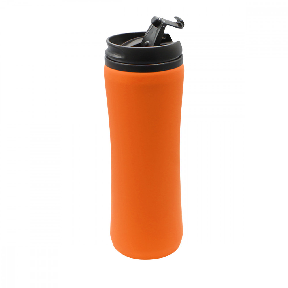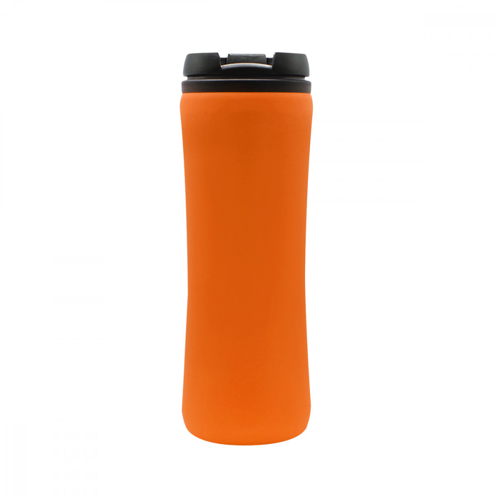 Термокружка изготовлена из нержавеющей стали с покрытием софт тач. Внутренняя колба сделана из пластика. Вакуумная конструкция. Откидной клапан позволяет пить, не снимая крышку, что помогает дольше сохранить начальную температуру напитка. Объем термокружки – 500 мл.
