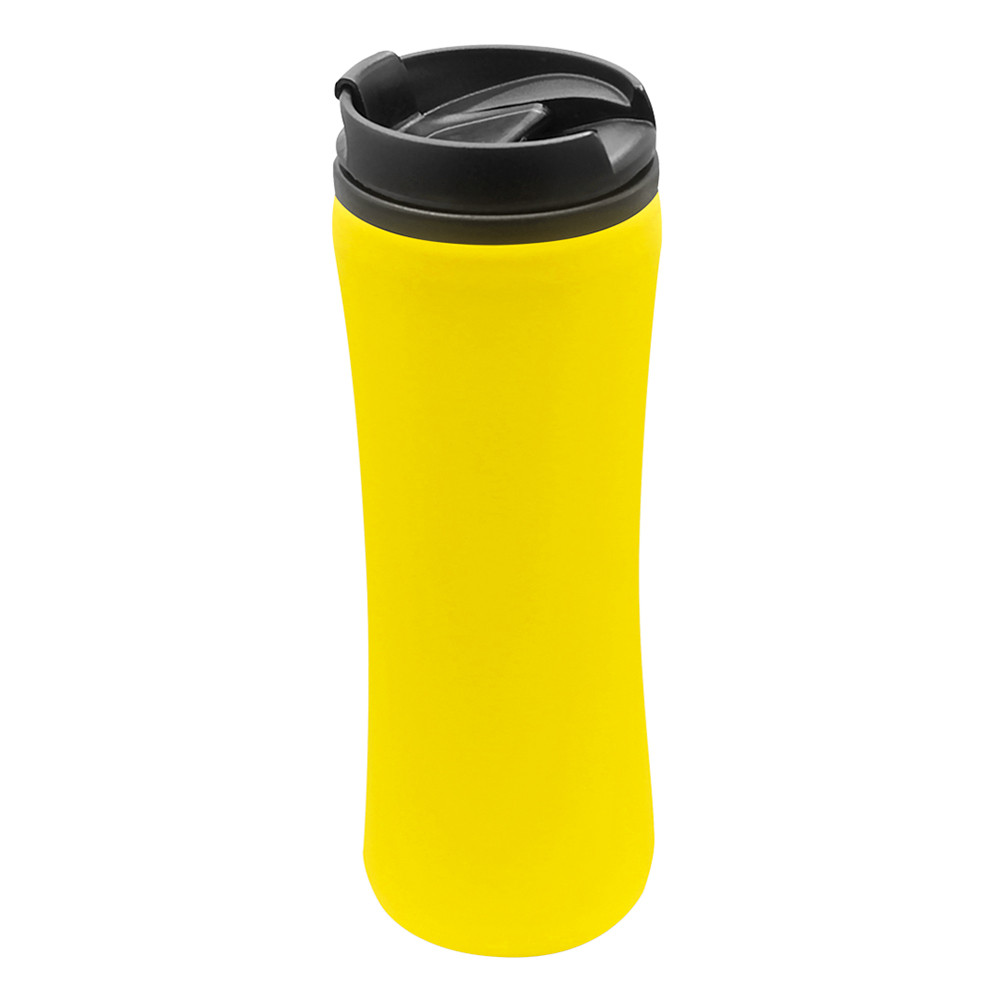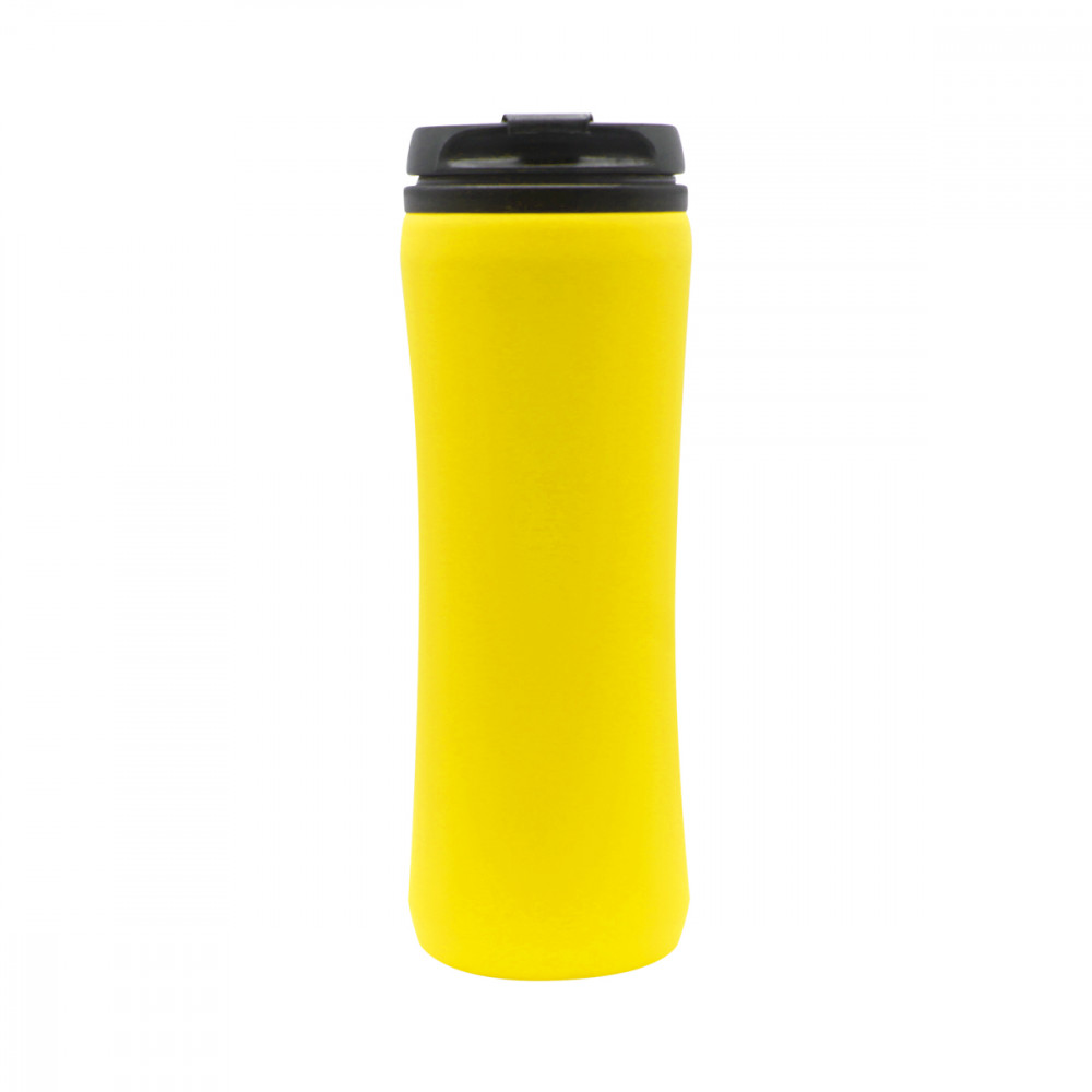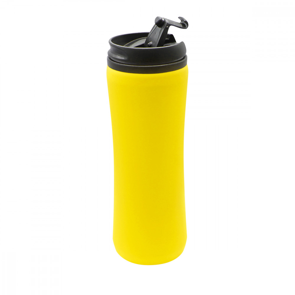 Термокружка изготовлена из нержавеющей стали с покрытием софт тач. Внутренняя колба сделана из пластика. Вакуумная конструкция. Откидной клапан позволяет пить, не снимая крышку, что помогает дольше сохранить начальную температуру напитка. Объем термокружки – 500 мл.