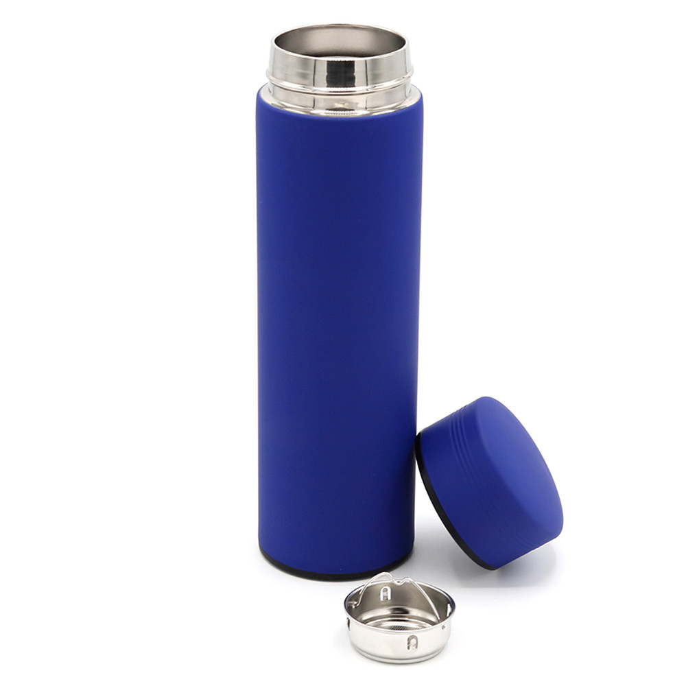 Необычайно приятный благодаря покрытию soft-touch термос BRONX в классической форме прекрасен и надежен как и вся классика. Внутри имеется съемное ситечко-инфьюзер из нержавеющей стали, что позволяет настаивать травяные напитки и чай. Синий цвет максимально приближен к пантону 2738C
