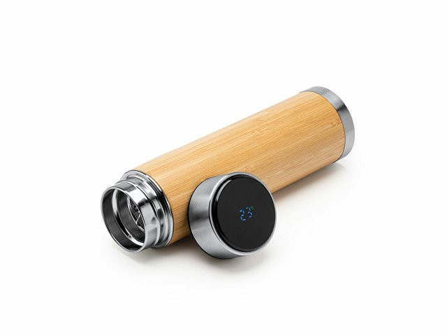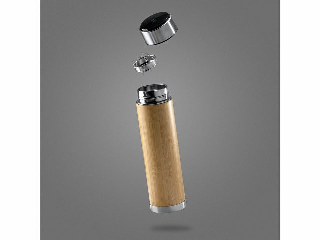Расчет нанесенияТермос с двойными стенками из нержавеющей стали 304 и бамбука с заварочным устройством. Цифровой сенсорный термометр на крышке, чтобы узнать температуру вашего напитка. Объем 480 мл.