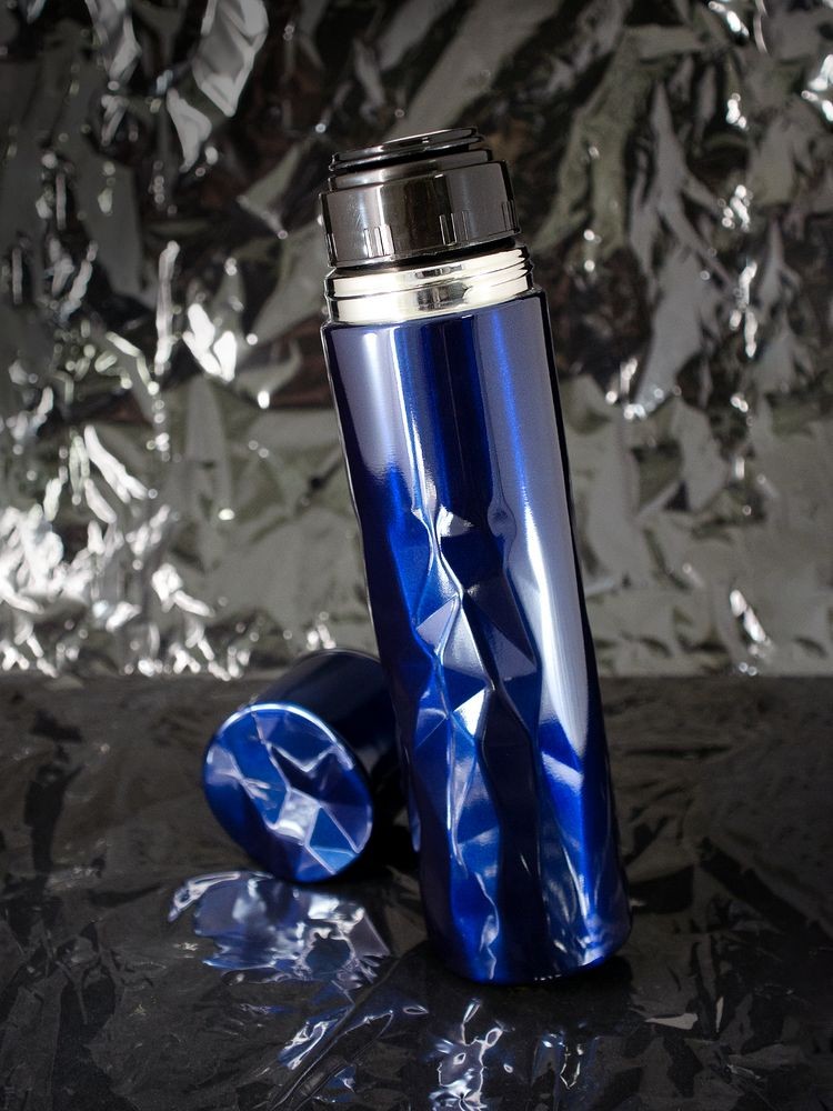 Двухслойная вакуумная конструкция из нержавеющей стали с завинчивающейся пробкой с клапаном.При гравировке корпуса — светло-серое изображение. Из-за технологических особенностей процесса круговой гравировки нанесение встык не производится.Крышку можно мыть в посудомоечной машине, корпус рекомендуем мыть вручную.
