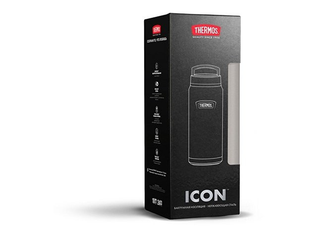 THERMOS, как компания-создатель первого в мире термоса, открывает новую эпоху изотермических товаров уникальной серией ICON™. Статус культовой она приобрела по достоинству, сочетая традиционное качество и инновации, призванные сделать жизнь людей комфортнее. Модель юбилейной линейки ICON™IS-212 GT впечатляет не только своим безупречным внешним видом, но и высокими температурными характеристиками. Благодаря глубокой вакуумной изоляции и особенностям конструкции содержимое термобутылки сохраняется горячим не менее 18 часов, а холодным – в течение суток. Оригинальность и эксклюзивность модели подтверждается пятью новыми патентами на элементы конструкции, обеспечивающие максимальное удобство при использовании термобутылки. Вместительный термос универсален и может пригодиться для хранения не только напитков, но и еды - за счёт горловины Dura-Use™, диаметр которой шире обычной. Еще одна особенность горловины – скруглённый край для комфорта при питье непосредственно из бутылки. Термобутылку легко носить в руке или прикрепить к рюкзаку благодаря оригинальной конструкции крышки-пробки Dura-Shield™ с прочной литой ручкой и рельефной накладкой с противоскользящим эффектом. Система быстрого открывания и закрывания Rapidcapтм минимизирует влияние температуры окружающей среды на содержимое термоса: достаточно повернуть крышку-пробку на один оборот. Корпус термобутылки отличается особой прочностью и не боится ударов за счёт усиленного дна. Для устойчивости на любых поверхностях термобутылка оснащена противоскользящим силиконовым основанием Griptec™. Благородный внешний вид термоса подчёркивает оригинальный дизайн и покрытие глубокого цвета тёмного гранита. Многослойное покрытие True-Coat™ нанесено по технологии порошкового полимерного напыления: создаёт приятный тактильный эффект при удержании термобутылки в руке, обеспечивает особую износостойкость и сохраняет первоначальный вид изделия на многие годы. Долговечностью отличается и логотип, нанесенный методом лазерной гравировки. Великолепная упаковка графитового цвета, декорированная серебристым тиснением, – ещё одно достоинство термоса как подарка. Все материалы, из которых изготовлен термос являются экологичными и безопасными. Корпус и колба из пищевой коррозионностойкой стали 18/8 AISI 304 Stainless Steel, которая отличается инертностью по отношению к содержимому и не влияет на его вкус, поэтому напитки и еда сохраняются в термосе ароматными и свежими долгое время. Крышка-пробка из термостойкого пищевого пластика, не содержит бисфенол А (BPA free), не впитывает и не поглощает посторонние запахи. Термос полностью соответствует Международному стандарту качества EN12546-1:2000.
