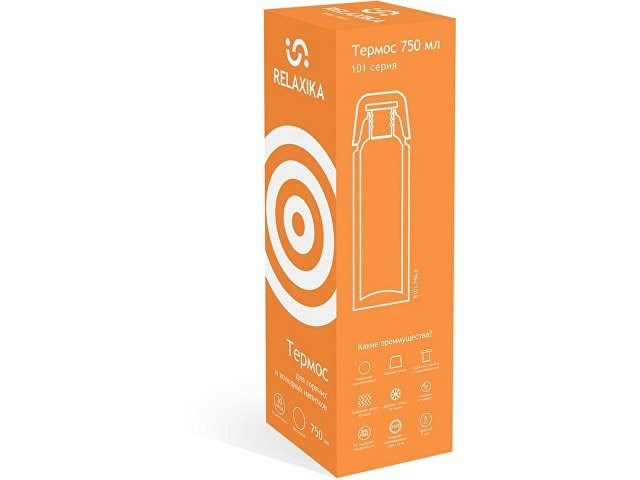 Классический термос Relaxika с высокими показателями удержания температуры напитка для походов, путешествий, спорта и ежедневного использования. Прочные двойные стенки из высококачественной нержавеющей стали 18/8 с вакуумной изоляцией гарантируют, что ваш напиток останется холодным в течение 36 часов и горячим до 30 часов. Этот материал не только прочен, но и гигиеничен, не выделяет никаких вредных для здоровья веществ. Ваши напитки сохраняет естественный вкус и не приобретут посторонний запах. Напиток остается холодным до 36 часов и горячим до 30 часов. - Узкое горлышко позволяет удерживать температуру максимально долго - Крышку термоса можно использовать как чашку BPA Free. В пластмассах, используемых для производства термосов, отсутствует Бисфенол А - Надежная закручивающаяся пробка с силиконовым кольцом защищает от протекания и помогает удерживать температура - Высококачественная нержавеющая сталь 18/8 Рекомендации по уходу Не рекомендуется использовать посудомоечные машины при мытье изделия. Мойте мягкими губками и жидкими моющими средствами. Не используйте сухие абразивные средства чтобы не поцарапать поверхность. После мытья необходимо протереть сухой салфеткой или полотенцем и оставить сушиться без крышки. Не для микроволновой печи или морозильной камеры. Чтобы предотвратить утечку, тщательно закройте верхнюю крышку.