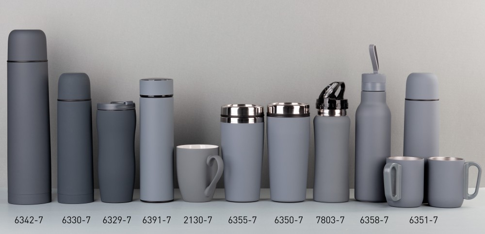 Внешняя стенка термостакана изготовлена из нержавеющей стали с уникальным прорезиненным напылением soft-touch, а внутренняя стенка выполнена из высококачественной пищевой, нержавеющей стали. Корпус изделия персонализируется по окружности встык. Термос оснащен пробкой с клапаном, которая позволяет наливать напиток одним нажатием.