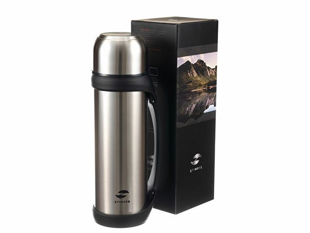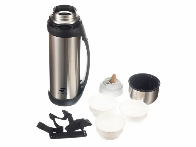ТЕРМОC С РУЧКОЙ STINGER 2,2 л НАЗНАЧЕНИЕ Термос STINGER предназначен для употребления пищевых жидкостей (воды, напитков) как в горячем, так и в холодном состоянии. ХАРАКТЕРИСТИКИ Объём: 2,2 л Вес: 1,306 кг Время сохранения тепла: 24 часа Время сохранения холода: 24 часа Метод изоляции: вакуум Размеры • Высота – 37,8 см • Диаметр горлышка – 7,5 см • Диаметр дна – 12,2 см • Ширина (с учетом ручки) – 13,9 см Тип крышки: винтовая Тип пробки: винтовая крышка-пробка с откидным механизмом Тип горлышка: широкое Тип подачи наполнения: откидной механизм Цвет: серебристый Материалы • Корпус: нержавеющая сталь, класс AISI 304 18/8 Stainless Steel • Колба: нержавеющая сталь, класс AISI 304 18/8Stainless Steel • Крышка: пищевой пластик, не содержит бисфенол А (BPA free) • Дополнительные чашки: пищевой пластик, не содержит бисфенол А (BPA free) • Прокладки-уплотнители: пищевой силикон ОСОБЕННОСТИ • Двойные стенки с вакуумной изоляцией отлично сохраняют температуру долгое время, гарантируют безопасность прикосновения к очень горячим и холодным напиткам. • Внешний и внутренний корпус из прочной пищевой нержавеющей стали AISI 304 18/8. • Пластиковые детали не содержат Бисфенол А (BPA FREE). • Герметичная крышка-пробка надежно защищает от случайного открывания и проливания жидкости. • Эргономичная ручка и съемный регулируемый ремень для удобной переноски. • Дополнительные чашки (3 штуки) в комплекте. • Идеально сохраняет вкус и аромат любимых напитков.
