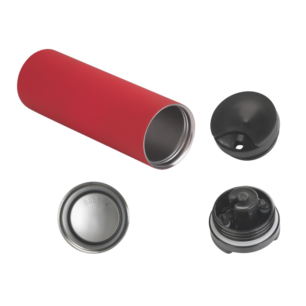 Внутри — пищевая нержавеющая сталь, снаружи — приятное прорезиненное покрытие soft touch. Термостакан прекрасно подойдёт для хранения горячих напитков благодаря вакуумной изоляции, которая держит высокую температуру, не нагревая внешние стенки.