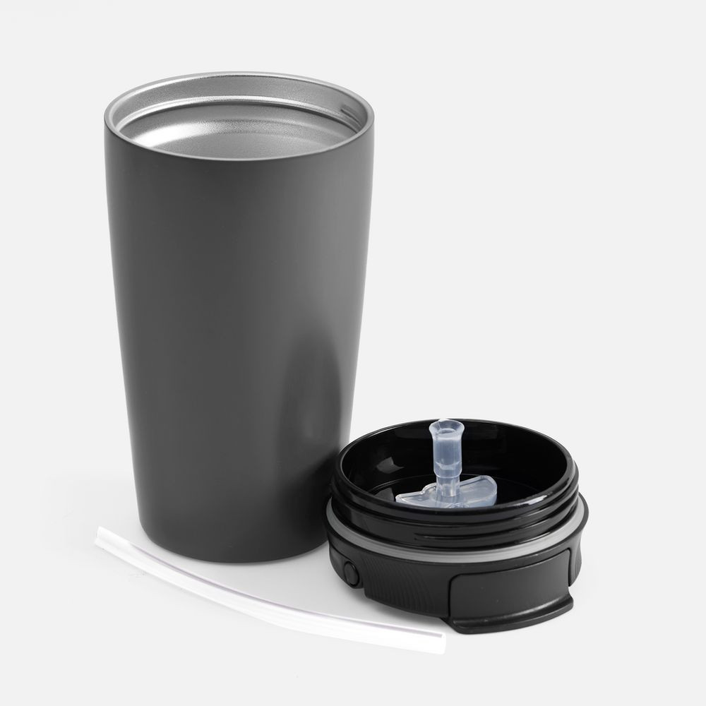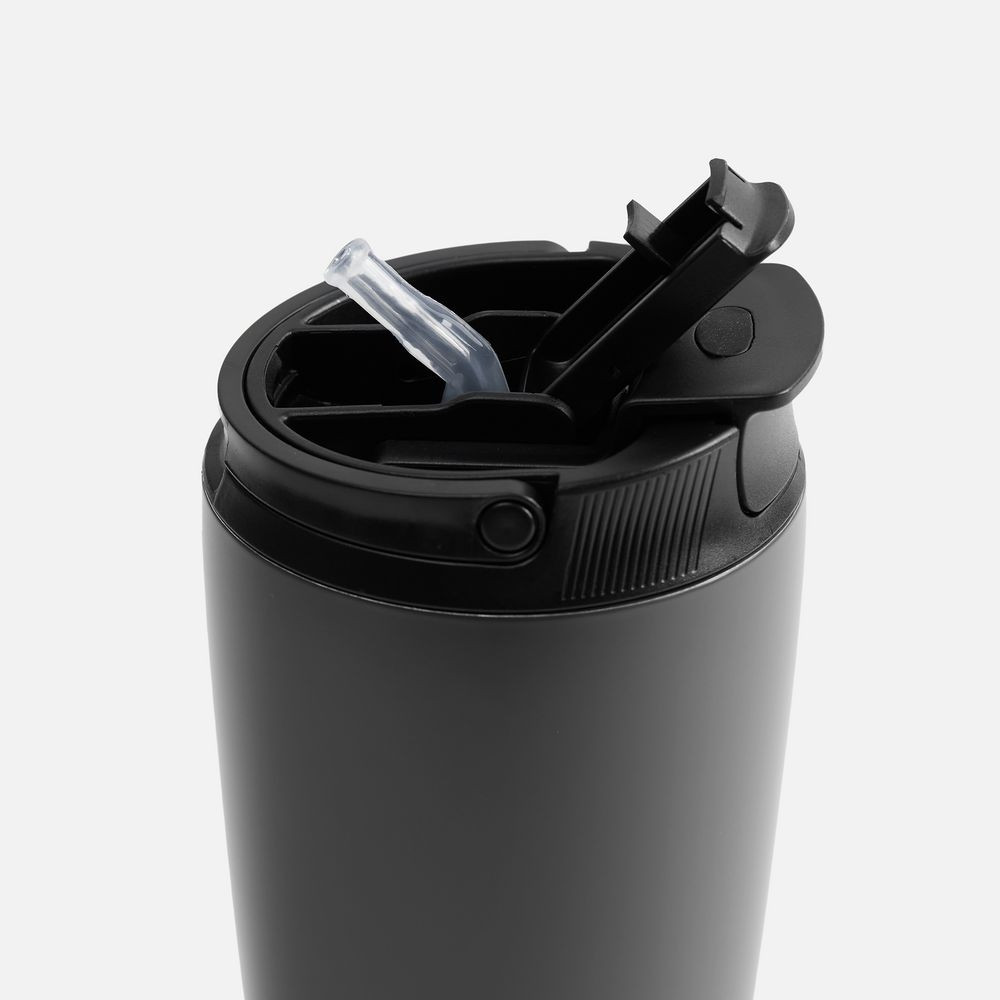 - Герметичная крышка с двумя поильниками: под одним из клапанов расположено стандартное отверстие для питья, под вторым — откидной поильник с трубочкой