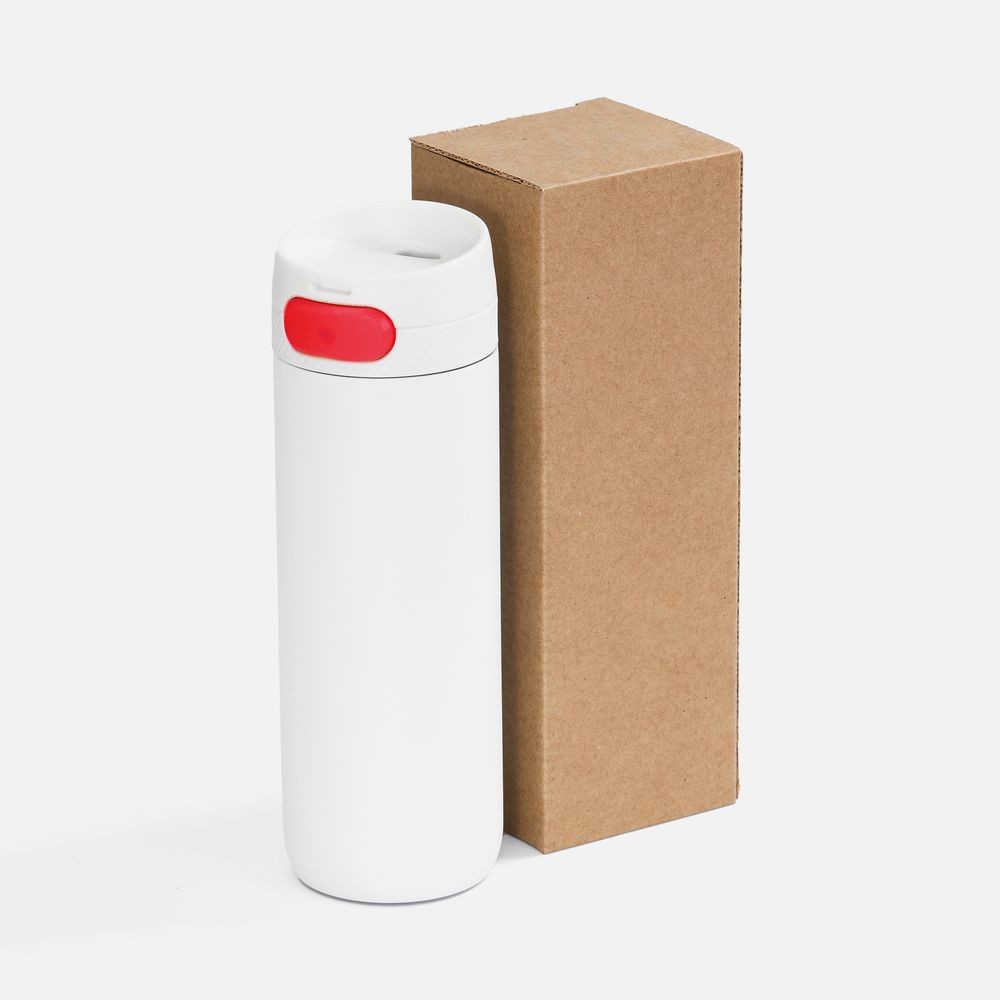 Термостакан X1 с цветной кнопкой, белый с красным НОВИНКА