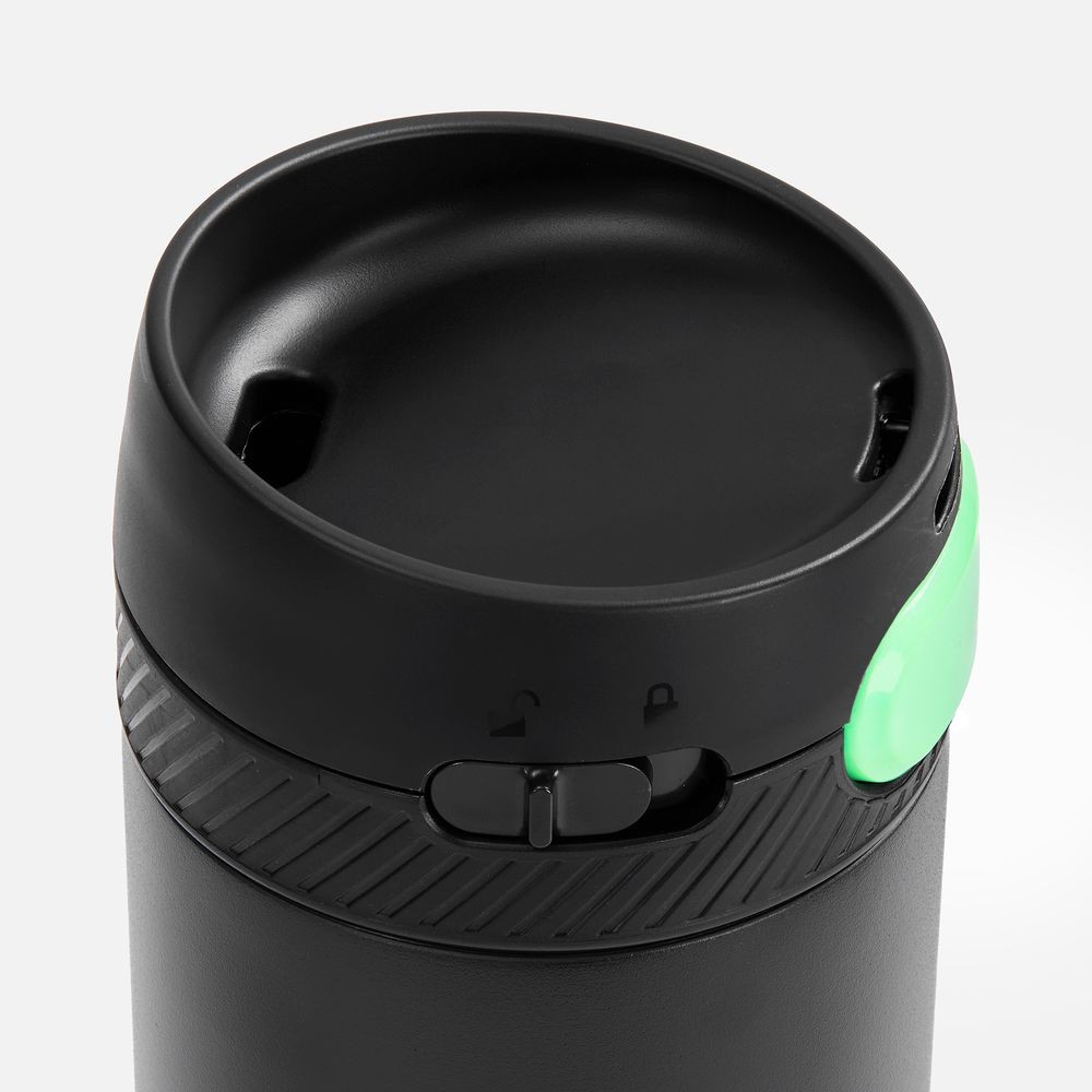 Термостакан X1 с цветной кнопкой, черный с зеленым